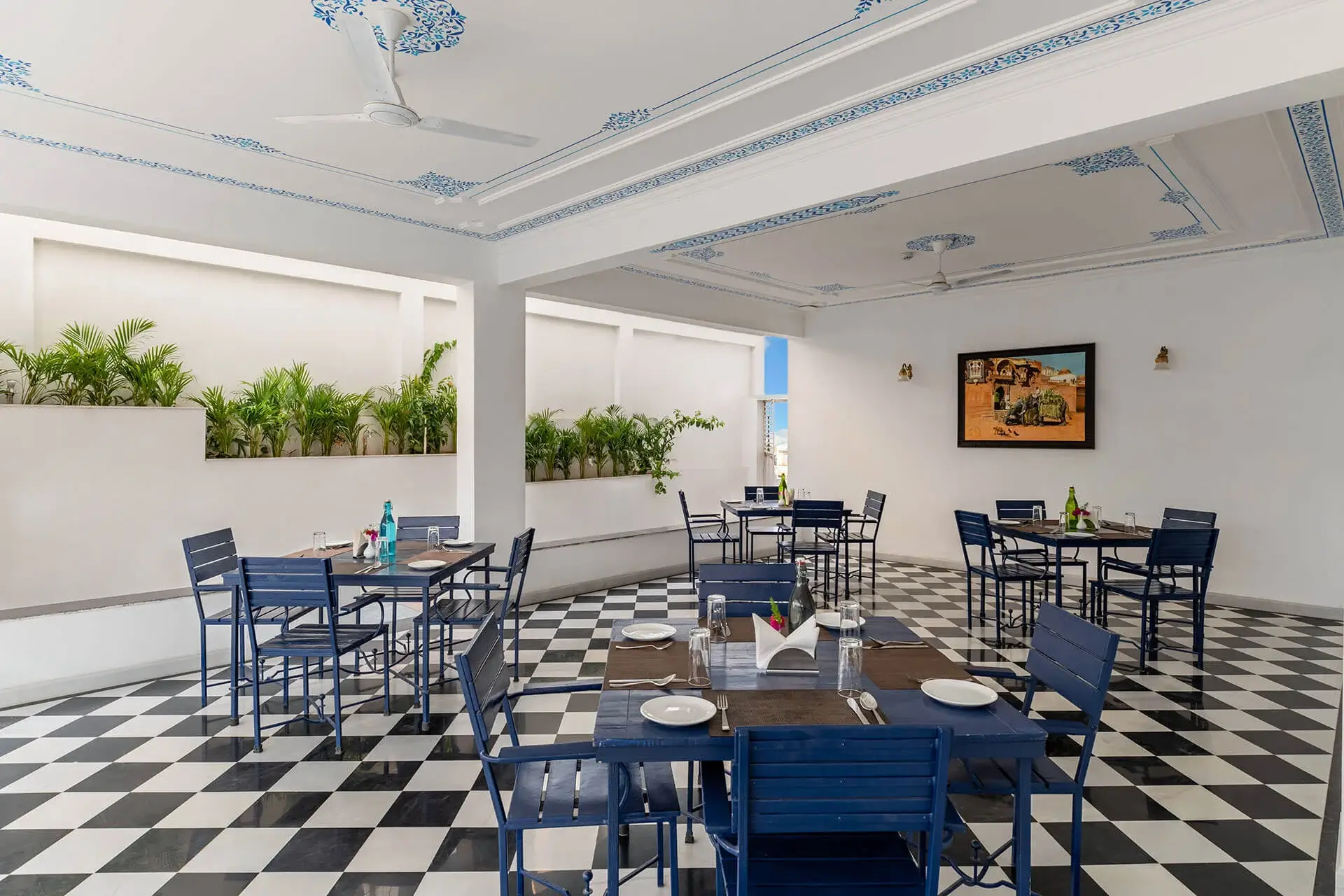 Step into the comfort of our air-conditioned indoor restaurant, designed to offer an exceptional dining experience for up to 52 guests. Savor a delightful selection of Indian and continental dishes, available through à la carte and buffet-style menus. Enjoy your meals in a cozy, elegant setting—perfect for family dinners, friendly gatherings, or quiet evenings. Don’t forget to capture the moment and share it online using our complimentary high-speed Wi-Fi. Discover why we’re known as one of the best restaurants in Udaipur.